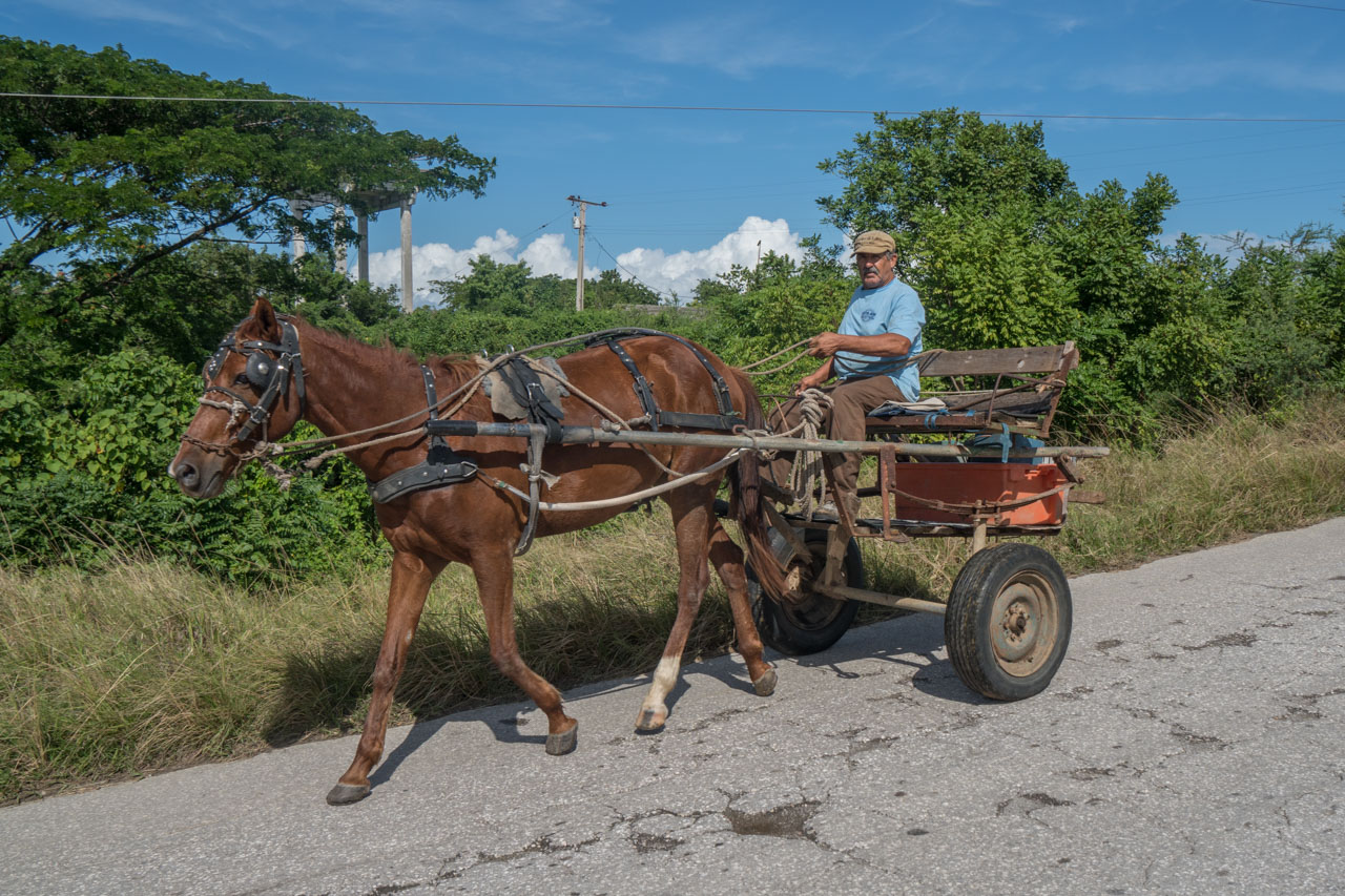 Etwas noch zu unseren Fahrrädern: Auf den ersten Etappen fühlten wir uns teils ziemlich fehl am Platz mit unseren für kubanische Verhältnisse sehr edlen Stahlrössern. Nicht, dass jemand etwas Entsprechendes zu uns gesagt hätte, aber Blicke reden oft mehr als Worte. Vielleicht haben wir es uns auch nur eingebildet. Jedenfalls hat sich das Gefühl bei uns unterdessen gelegt. Wohl auch, weil einige Leute interessiert reagiert haben. Da ist zuerst der Enkel der Casa-Besitzer in Viñales. Er betreibt im Hinterhof des Casas eine improvisierte Motorradwerkstatt. Die aus China importierten überall verbreiteten Elektrotöffs sind übrigens nicht so genial wie wir dachten. Ist nämlich die Lebensdauer des Akkus (ca. nach 2 Jahren) abgelaufen, bekommt man in Kuba keinen neuen Akku. Das bedeutet: Motorrad unbrauchbar – bzw. nur noch als Ersatzteillager. Der junge Mann, der durchaus ein technisches Verständnis hat, wollte dann also alles über unsere Fahrräder wissen. Vom Zahnriemen über das Schaltgetriebe, den Dynamo mit dem USB-Anschluss zu den Scheibenbremsen. Und alles wurde genaustens mittels Handyfotos dokumentiert.