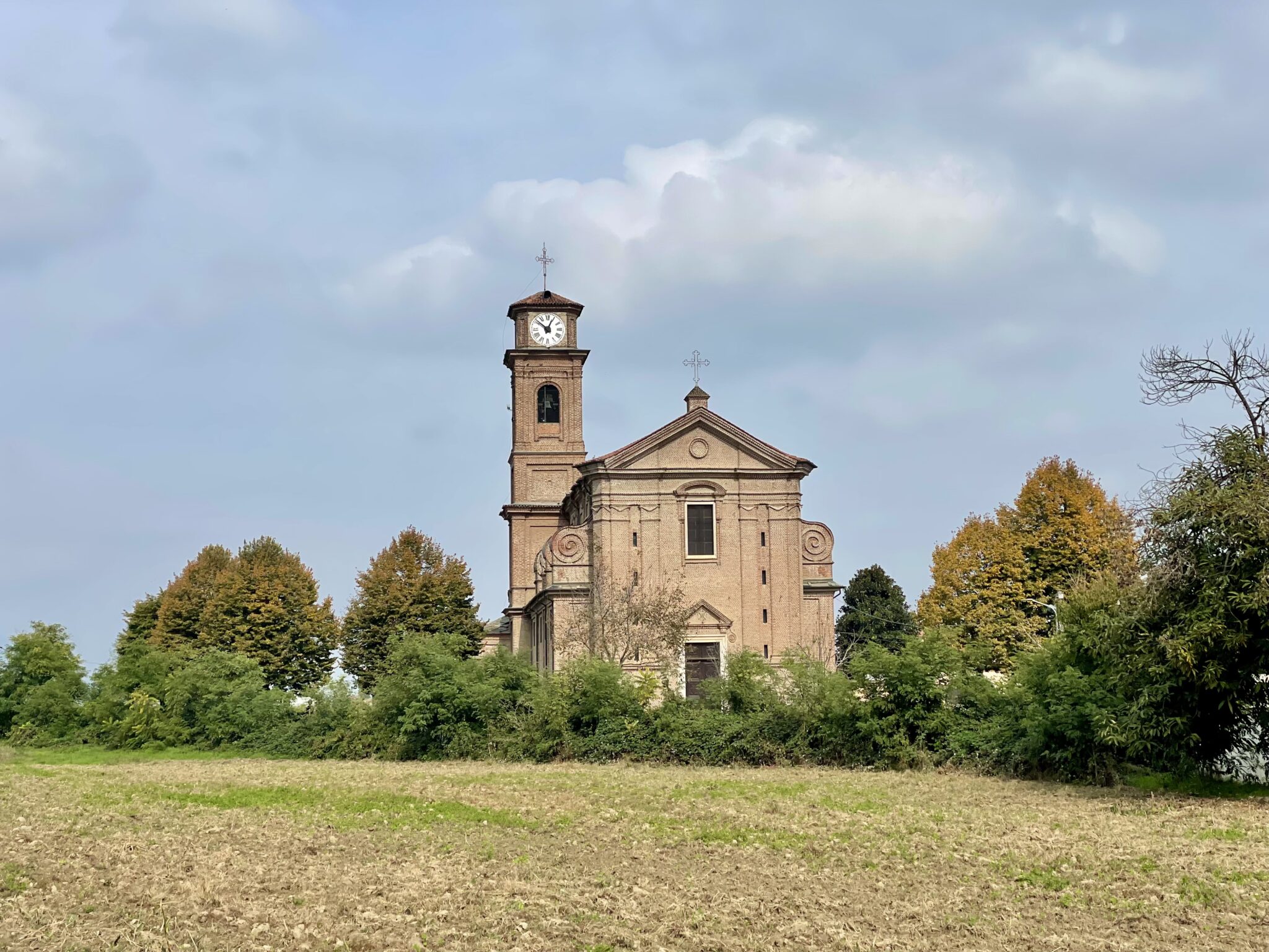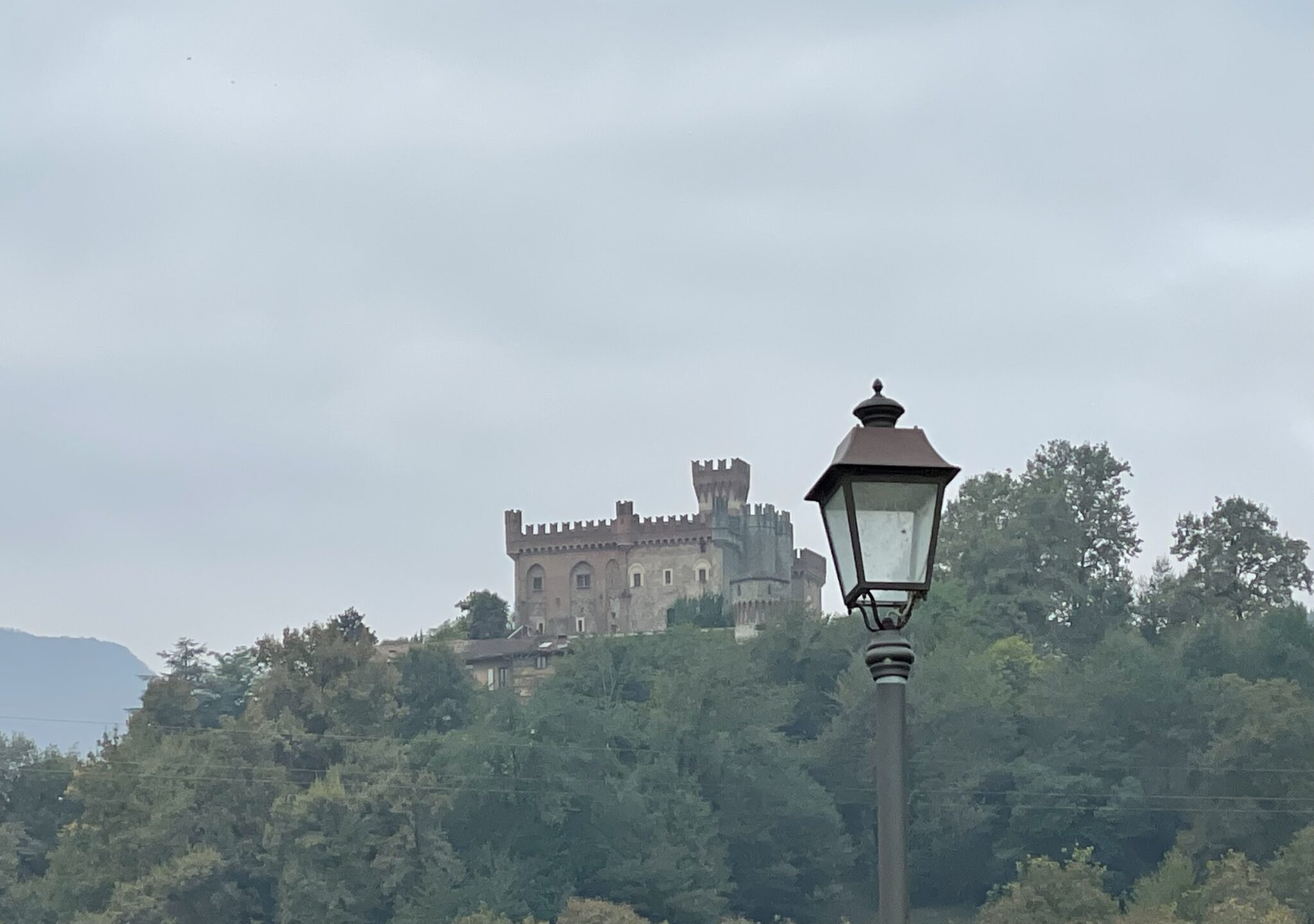 Unsere letzte Velo-Etappe startet mit dem Frühstück in unserem B&B. Dazu mussten wir uns mit dem Lift wieder absenken lassen in die Speisekammer. Mit am Tisch ist ein italienisches Paar, im Schnitt etwa gleich jung wie wir, er aber älter. Sie haben gestern unsere heutige Etappe gemacht und wir machen heute ihre gestrige. Wir finden uns, haben es lustig, nicht zuletzt wegen dem Sprachmix Englisch und Italienisch mit einem Schuss Spanisch (nicht beabsichtigt). Sie wohnen in Turin, wissen einiges über die Gegend und sind an unseren Veloreiseerfahrungen interessiert. Er erzählt uns dann, dass es in dieser Zeit in dieser Gegend viele Frogs 🐸 hat. Seine Zusatzgeste (darin sind Italiener ja gut) zeigt aber in den Himmel. Er meinte natürlich Fog 🌫️. Tatsächlich strahlte die Sonne den ganzen Tag etwas betrübt in die Po-Ebene.