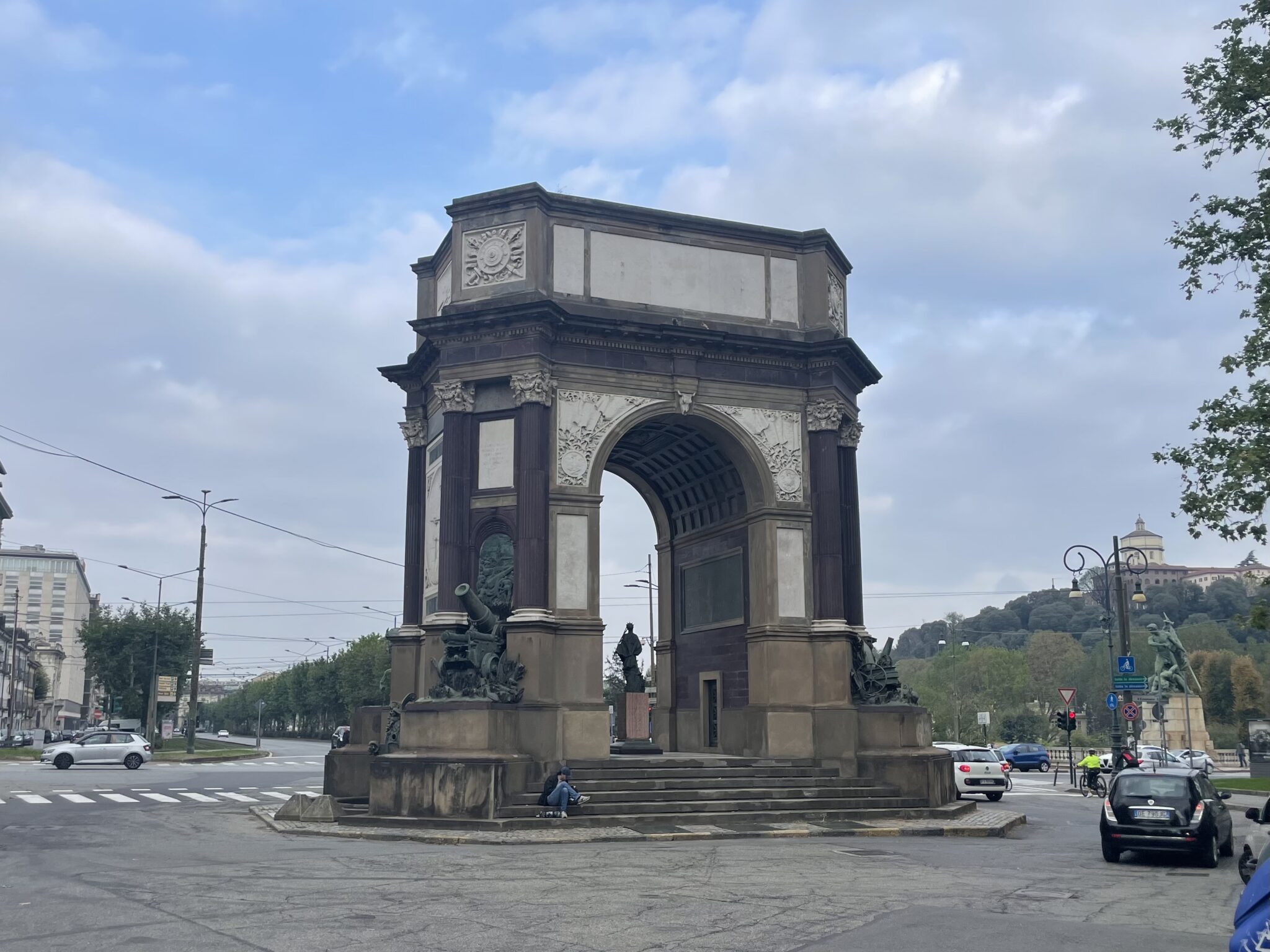 Was macht der Arc de Triomphe hier? War das etwas die Seine und gar nicht der Po, an dessen oder eben deren Ufer wir um die Spazierenden herumgekurvt sind? Im Verkehr im Zentrum wurde aber schnell klar, das muss Italien sein. Überall parkierte Autos mit aktiven Pannenblinkern, auch auf Radwegen (liebe Italienerinnen und Italiener: diese rote Taste mit dem Dreieck in eurem Auto, ist keine Unsichbarmachtaste).