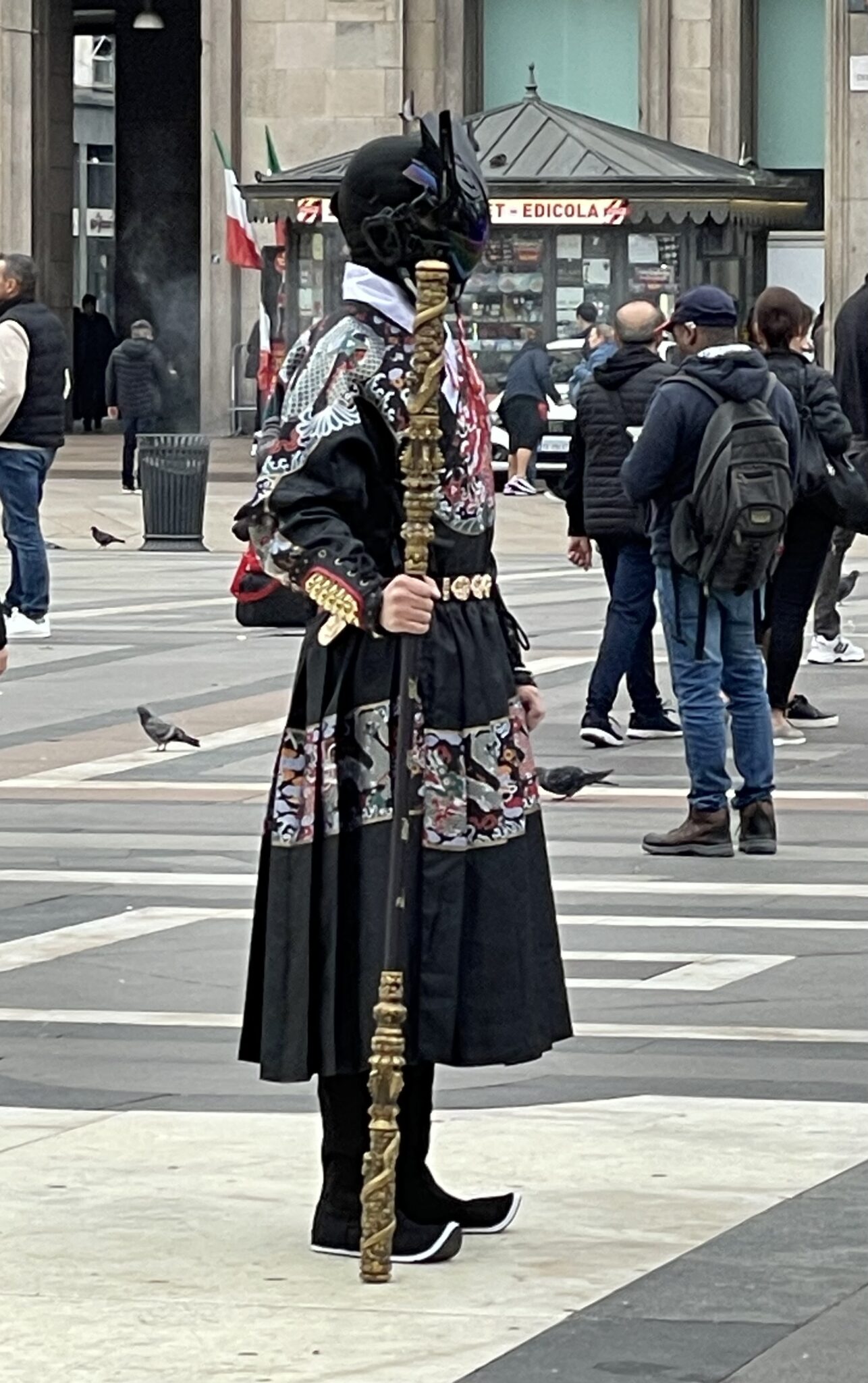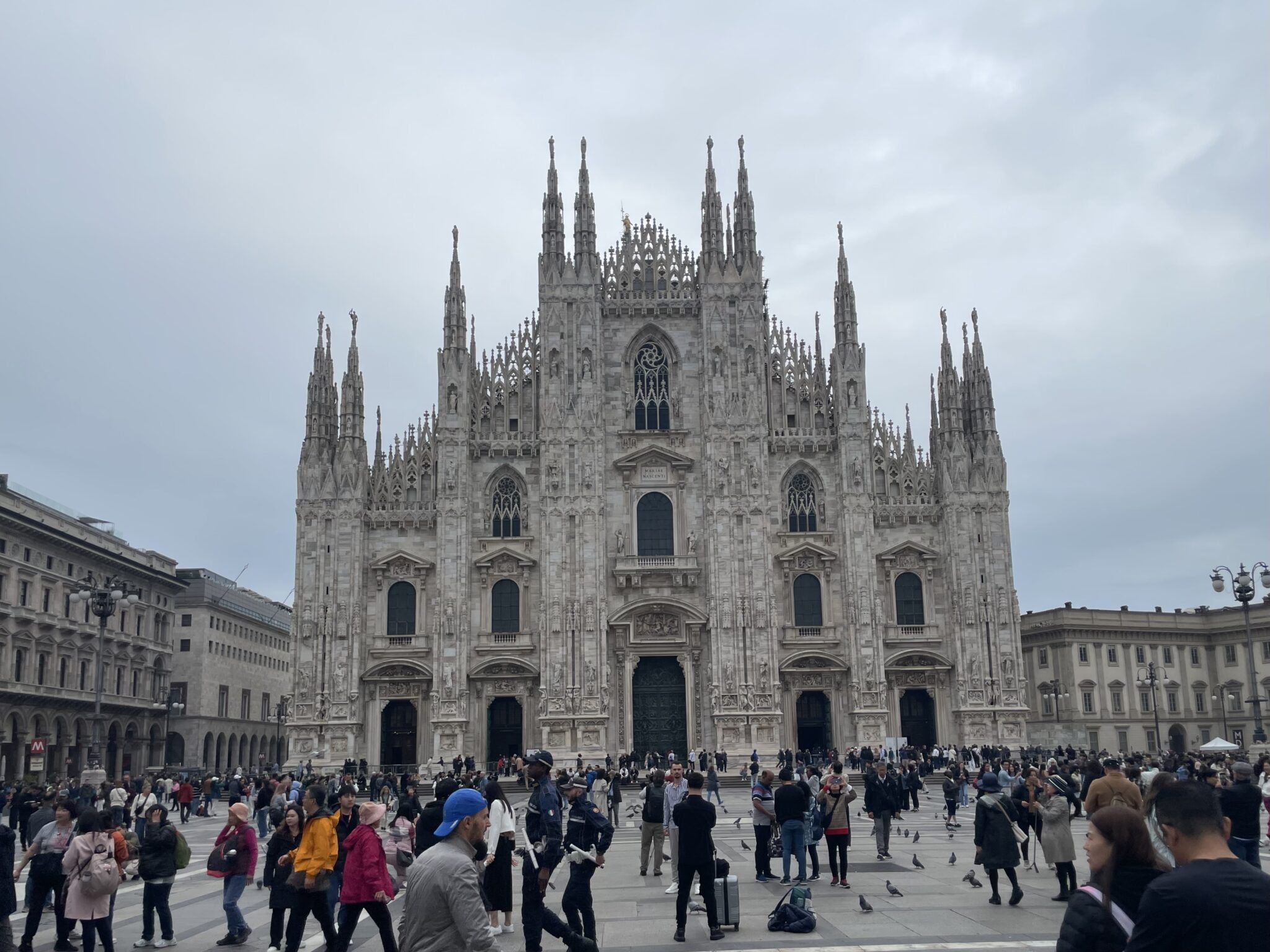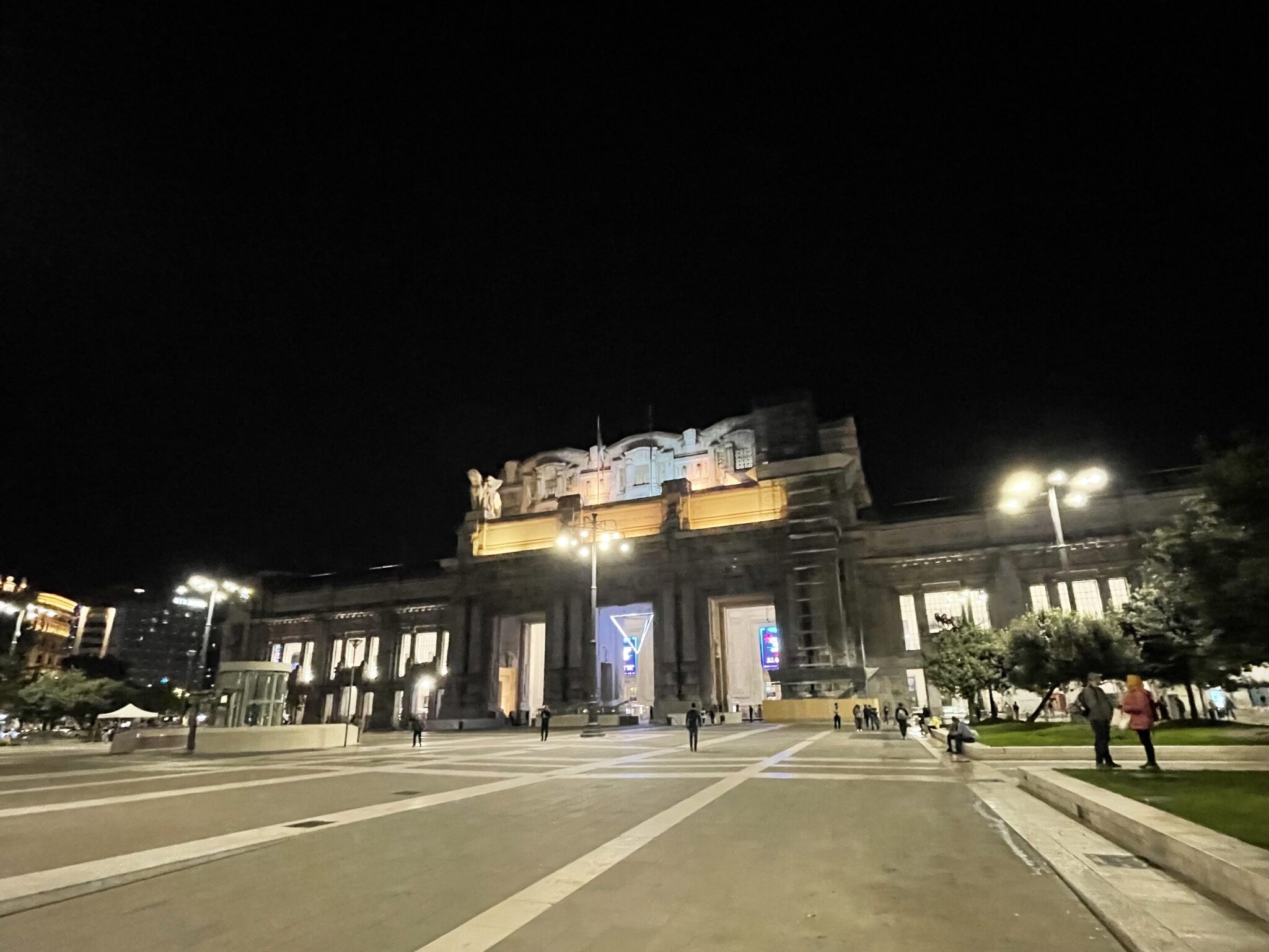 Dann hatte Merita die glorreiche Idee, bereits am Vorabend mit dem Zug nach Mailand zu fahren. Als streikunerfahrene Reisende (ja, die Eisenbahner haben gerade gestreikt), sind wir sicher, dass unser Zug fährt, schliesslich steht er auf der Anzeigetafel, während bei andern „Cancellato“ steht. Freudig das Ticket gelöst, päng steht 30 min. verspätet. Ok gut, dann liegt noch ein Glacé drin. Glacés in den Händen, päng steht „Cancellato“. So blieb uns noch etwas mehr Zeit, die Leute zu beobachten, von denen es logischerweise anständig viele hatte. Lustigerweise entdeckten wir in der Menge zwei Bekannte, nämlich die beiden Velöler aus dem B&B. War das ein „Ciao“ und „Hello“!