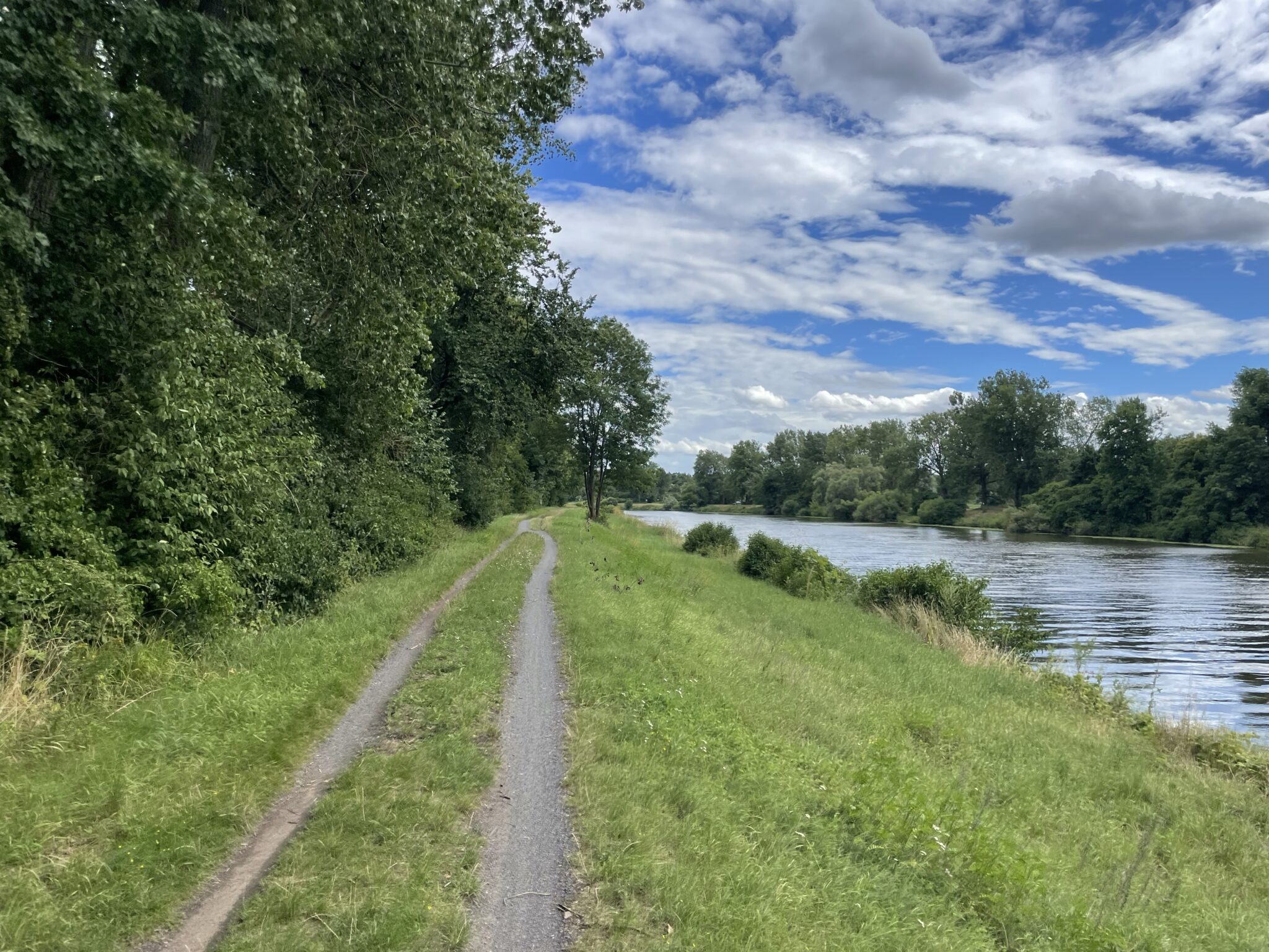 Von nun an wird die Routenwahl und die Planung ziemlich schwierig. Obwohl viele Radwege eingezeichnet sind, taugen sie manchmal dafür schlicht nicht im geringsten. Es hat Löcher (ich meine Lööööcher, nicht Dellen), Sumpf (zum Steckenbleiben tief), Sand (teilweise richtig tief), Wiese als Weg. Meist hat es sogar Velospuren und vereinzelt auch polnische Velofahrerinnen und -fahrer, sogar schiebende, aber wir wollten ja Velo fahren, nicht wandern. Leider ist das kaum zu planen und vorauszusehen. Wenn es dann einmal eine gute Strasse ist, spüre ich wie der starke Gegenwind meine Fellohren nach hinten klappt.