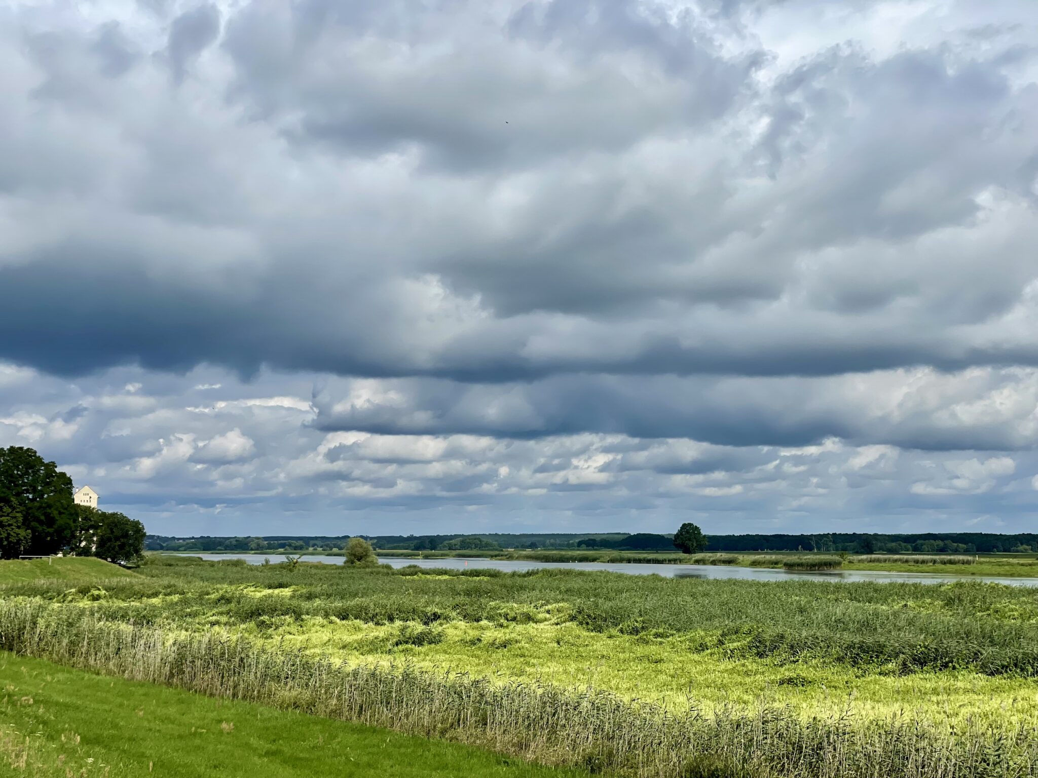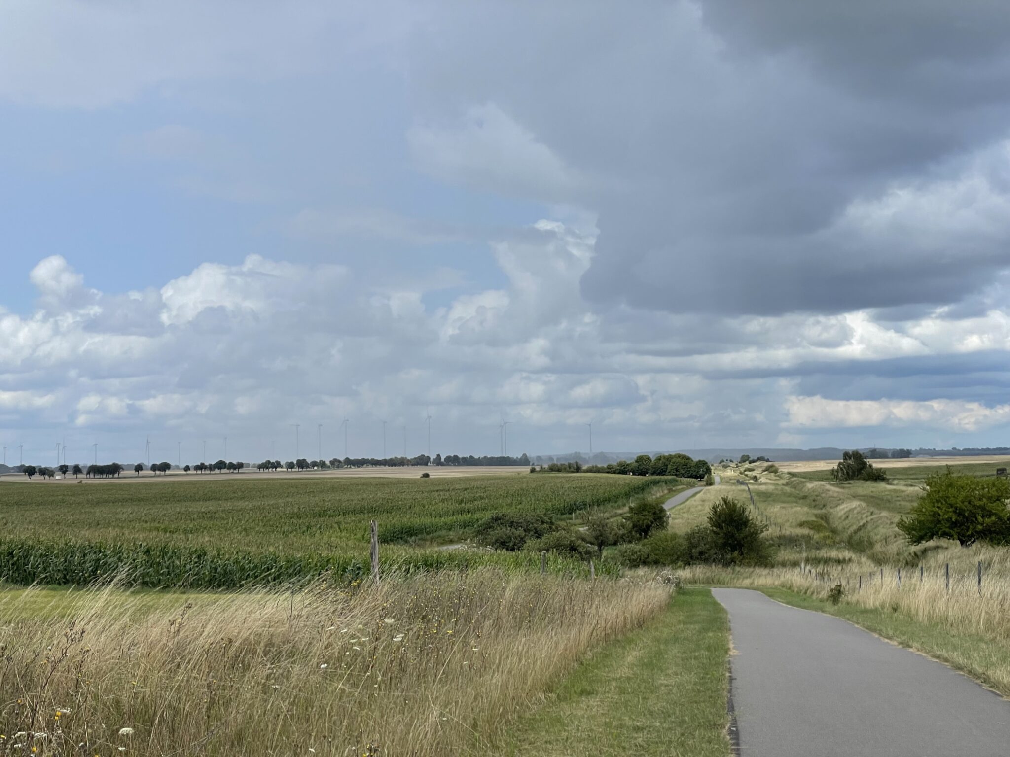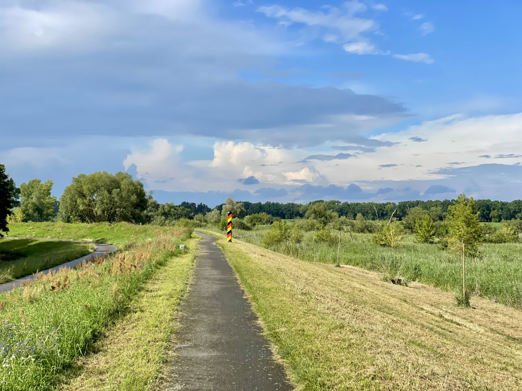 Dafür kommen wir auf den Hochwasserdeichen der deutschen Seite gut und schnell vorwärts. Sie sind nämlich nach DIN 19712 (ja, schaut nur, damit ihr wieder was lernt Link) geformt und perfekt asphaltiert.