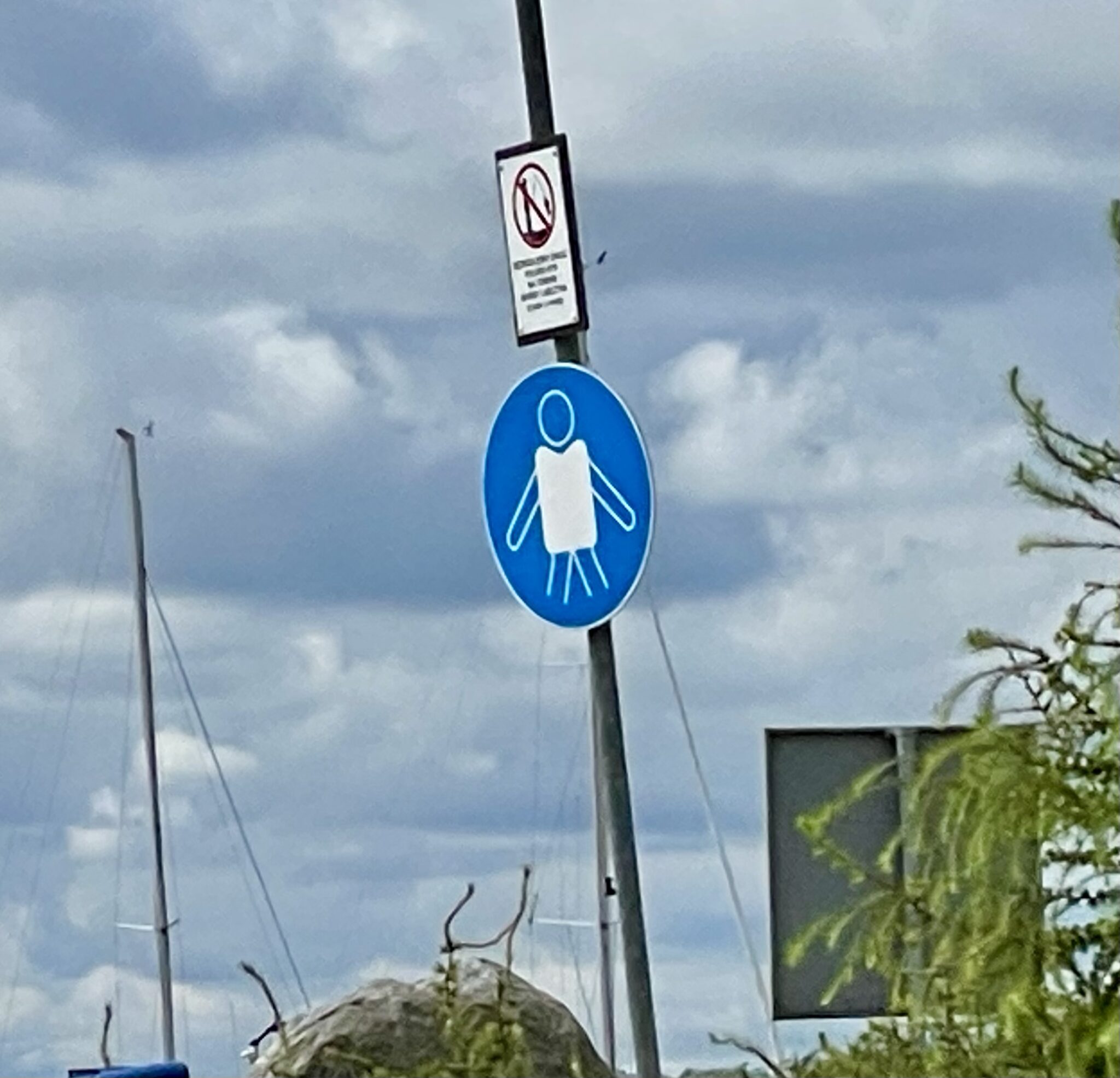 - Auf unserer letzten Etappe entlang der Ostseeküste fuhren wir wieder nach Deutschland durch die Orte Ahlbeck und Heringsdorf auf Usedom. Wir waren gerade mal 1000 m in Deutschland eingedrungen, als uns ein rüstiger Rentner, mit Airbag unter dem Shirt, vom Radweg runter schimpfte. Es gibt da einen Fussgängerweg, einen Fahrradweg und eine kleine Strasse. Wir haben uns für die Freundlichkeit bedankt und für ein Stück die Strasse genommen. Weiter vorne sahen wir dann an jeder Laterne des Veloweges ein laminiertes Veloverbotsschild mit Klebeband montiert 🤷🏻♂️. Er tat uns leid.