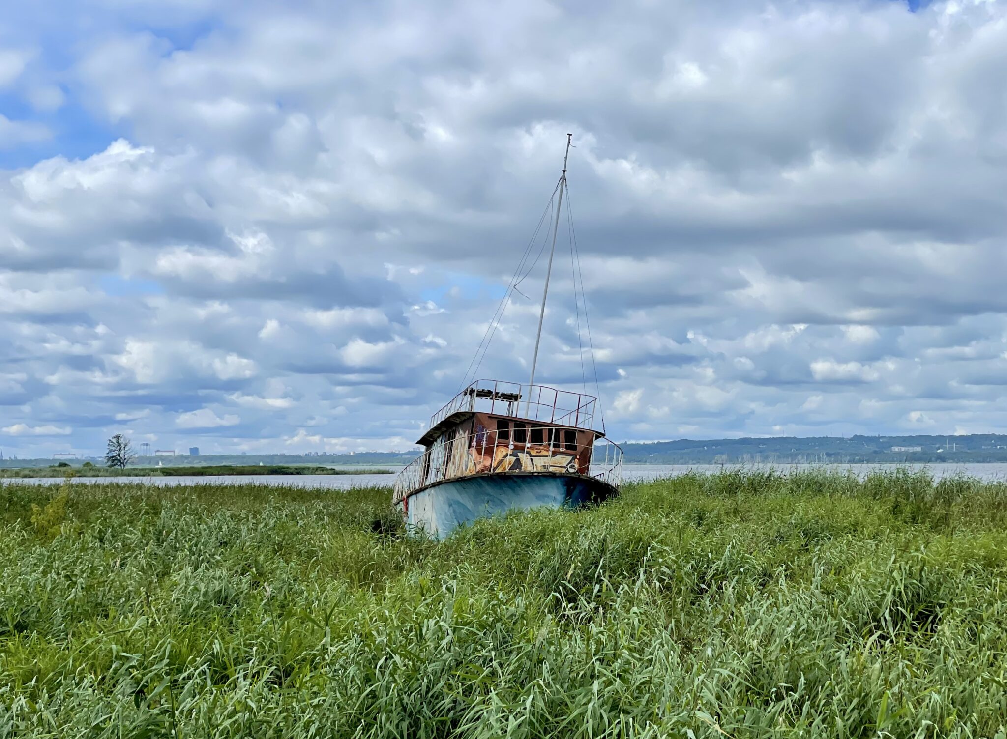 Das Stettiner Haff (an der Ostsee werden Lagunen “Haff” genannt) umfahren wir auf der polnischen Seite durch viele Naturschutzgebiete (hier werden zum Beispiel Mücken nicht gejagt! Da lobe ich mir mein Bärenfell).