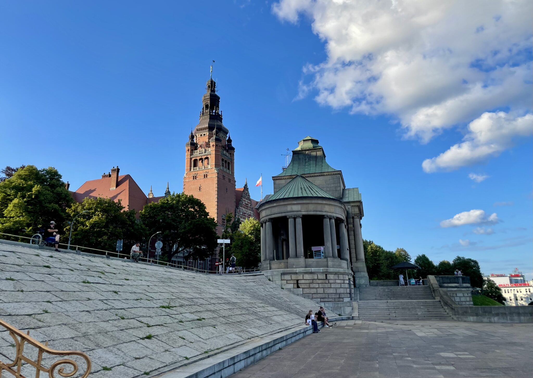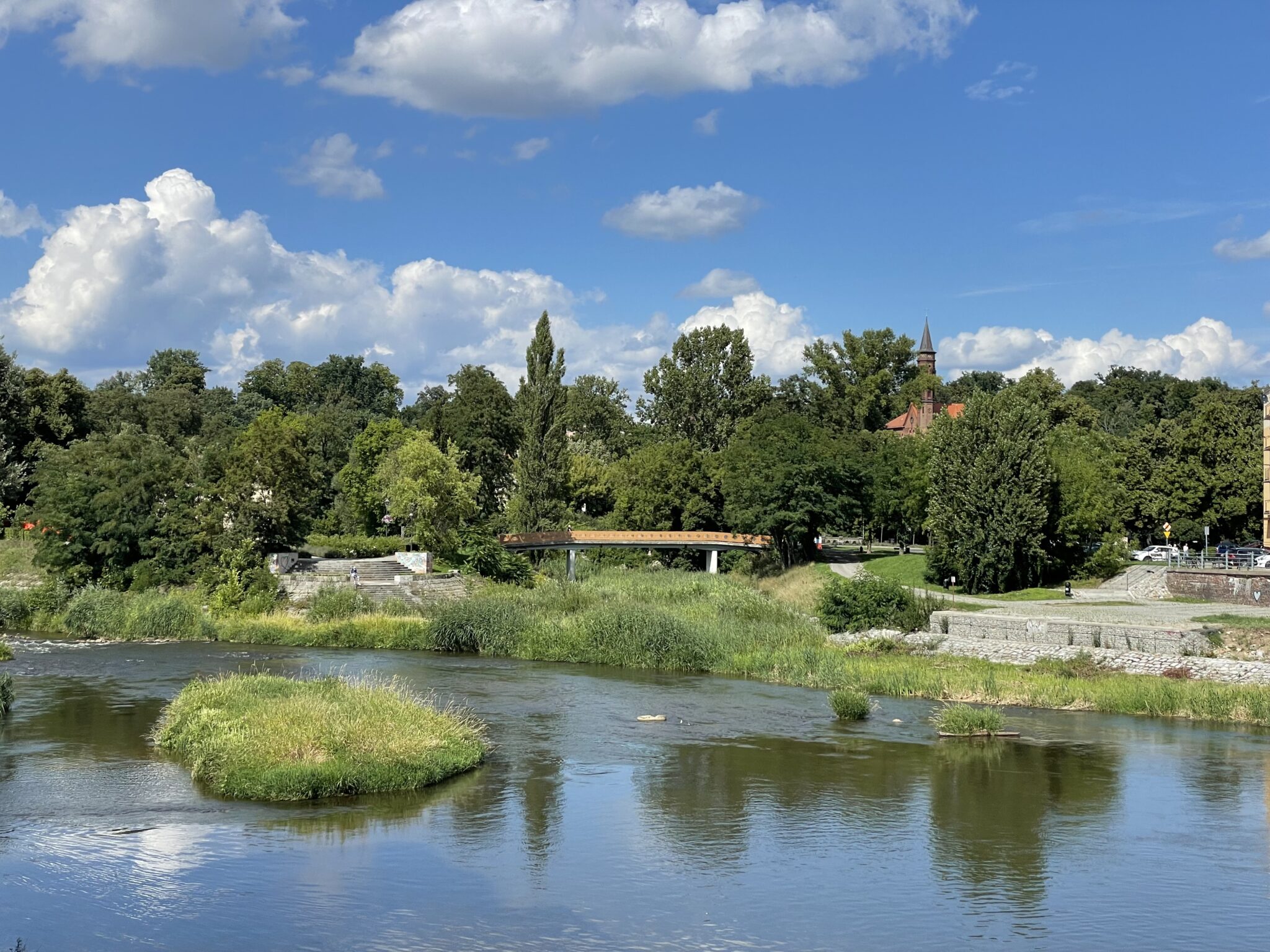 In Stettin bzw. polnisch Szczecin (kein Schreibfehler) fliesst die Oder über (in das Stettiner Haff) und auch die Freude unserer beiden Velöler (ab der unerwartet schönen Stadt). Die haben sich einfach nicht gut vorbereitet, die Stadt ist nämlich nicht neu.