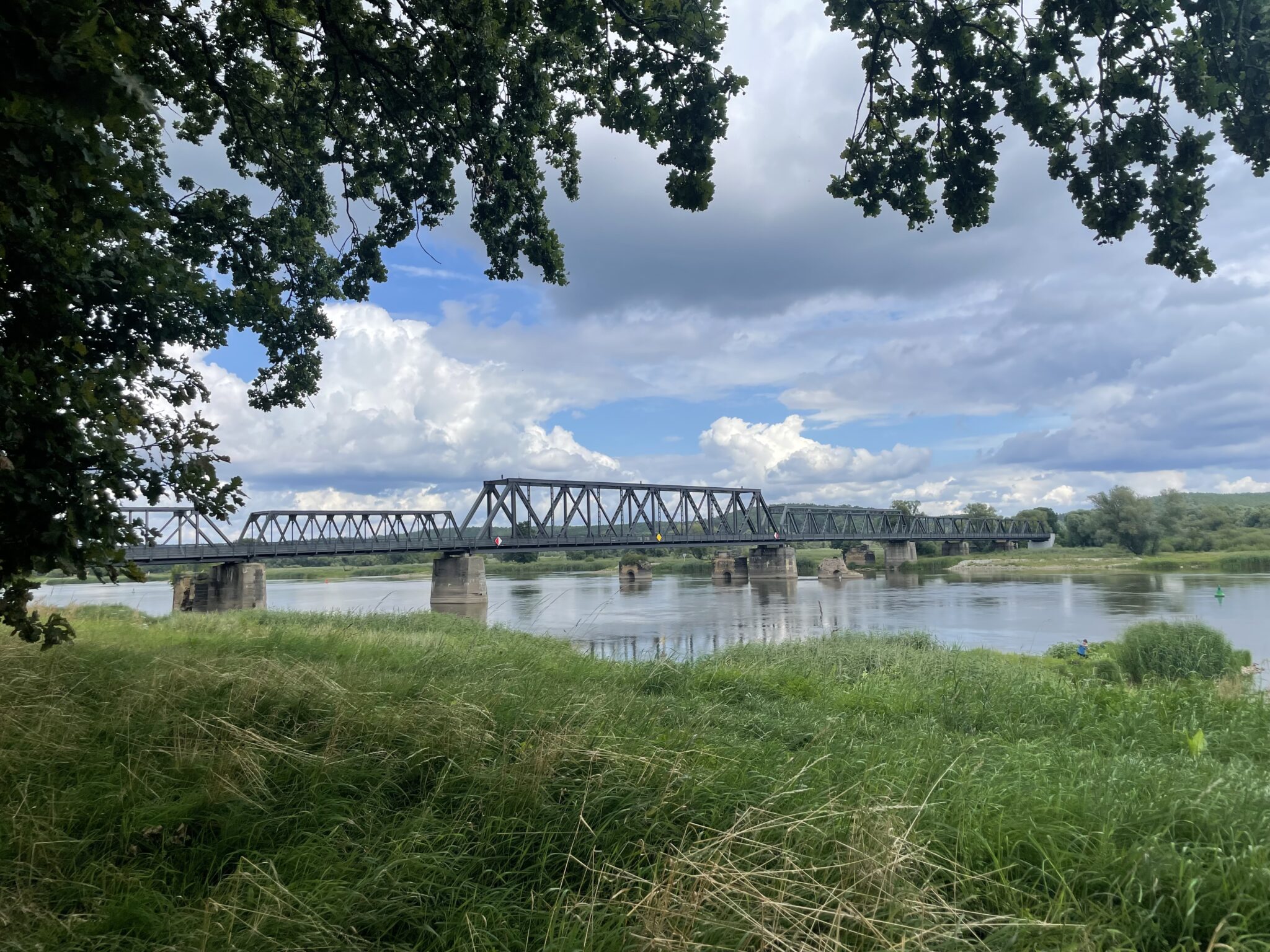 Wir fahren nun wahlweise auf der deutschen Seite, wenn wir bessere Wege wollen, geschichtlich interessante Orte unsere Aufmerksamkeit erheischen oder eine Übernachtungsstätte mit einem Etappenziel zusammenfällt. Oder wird fahren über die Oder nach Polen, wenn wir einfache Dörfer, etwas holperigere Wege und mehr Natur wünschen, günstigere Einkaufsmöglichkeiten und nette polnische Leute sehen wollen oder eine Übernachtungsstätte mit einem Etappenziel zusammenfällt. Insgesamt ist es beidseitig nicht so dicht besiedelt, wie wir das gedacht hätten, aber wir planen Einkaufen und Übernachtung gut ein. Oderübergänge gibt es auch nicht so viele. Eine Fähre zum Beispiel, die wir nehmen möchten, fährt wegen Niedrigwasser nicht.