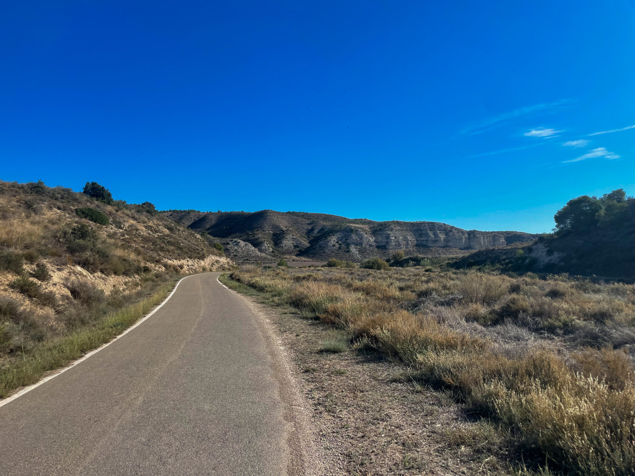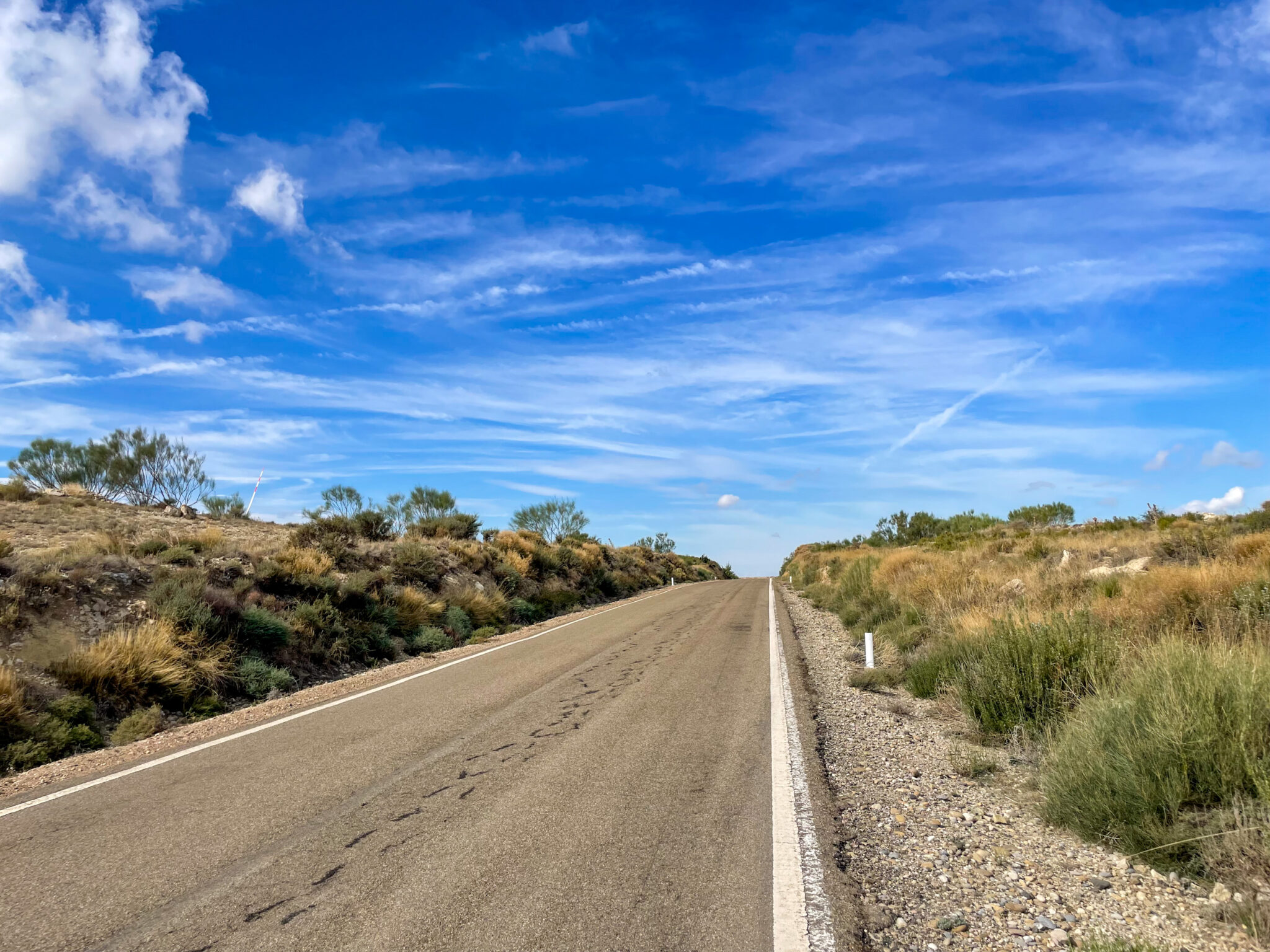 Nach Zaragoza verlassen wir das Ebro-Tal und steigen in eine Hochebene auf, die gemäss Beschreibung wenig Zivilisation und wüstenähnliche Gegenden zu bieten hat. Im Sommer sei es zudem sehr heiss, aber der hat ja schon das Feld geräumt. Gegen den Schluss komme dann aber eine Früchtekammer Kataloniens. So fahren wir gespannt zur Prüfung dieser Sachverhalte los …