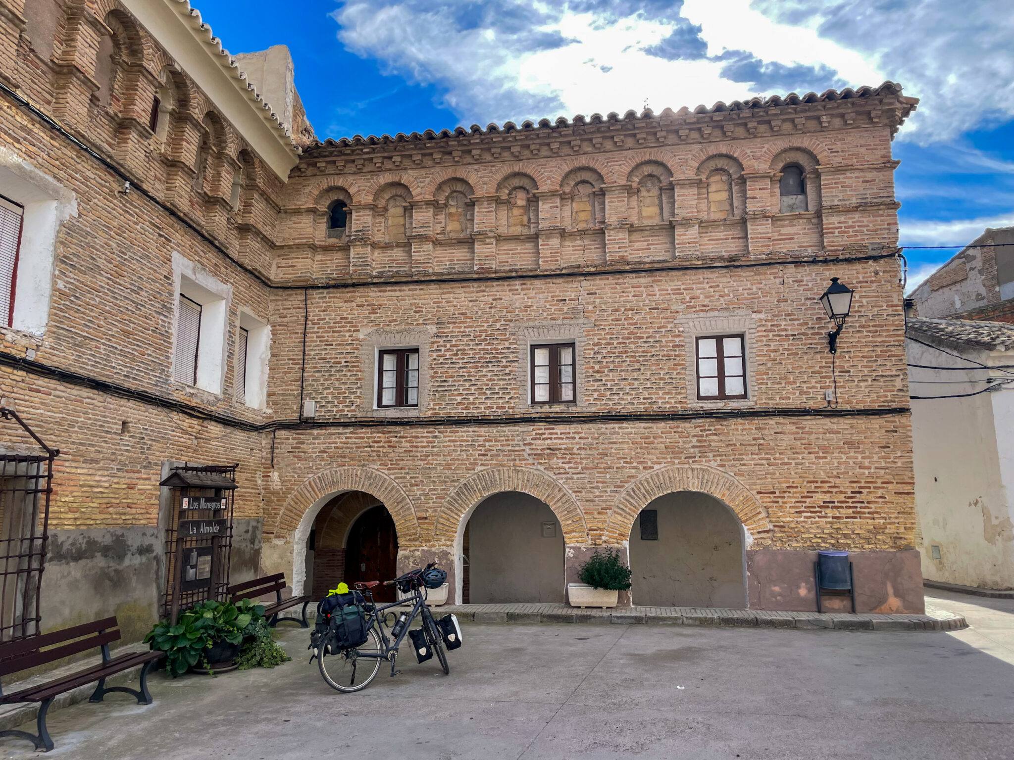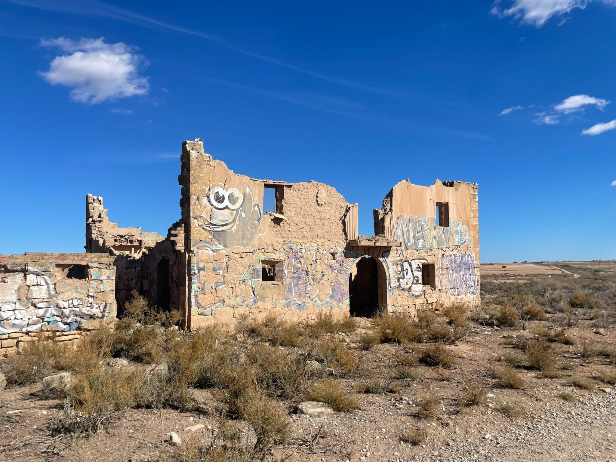 In Farlete möchte ich Mittagspause machen. Das Dorf taucht plötzlich in der Steppe und fast ein bisschen wie im wilden Westen auf. Wasserstelle gibt es keine, aber dafür einen kleinen Saloon Laden und ich denke, die Leute sind sicher sehr froh, dass es diesen und auch einen Bankomaten gibt.