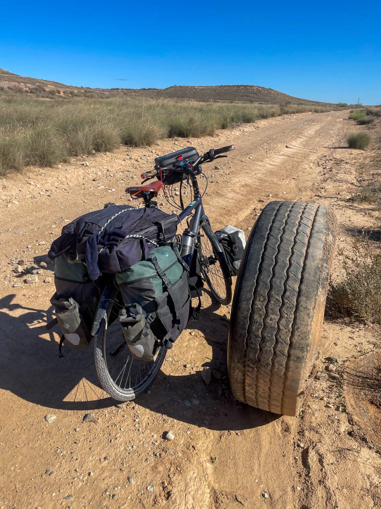 Ich überlege mir noch ganz kurz, ob ich den gefunden Ersatzpneu einpacken soll, in dieser abgelegenen Gegend: